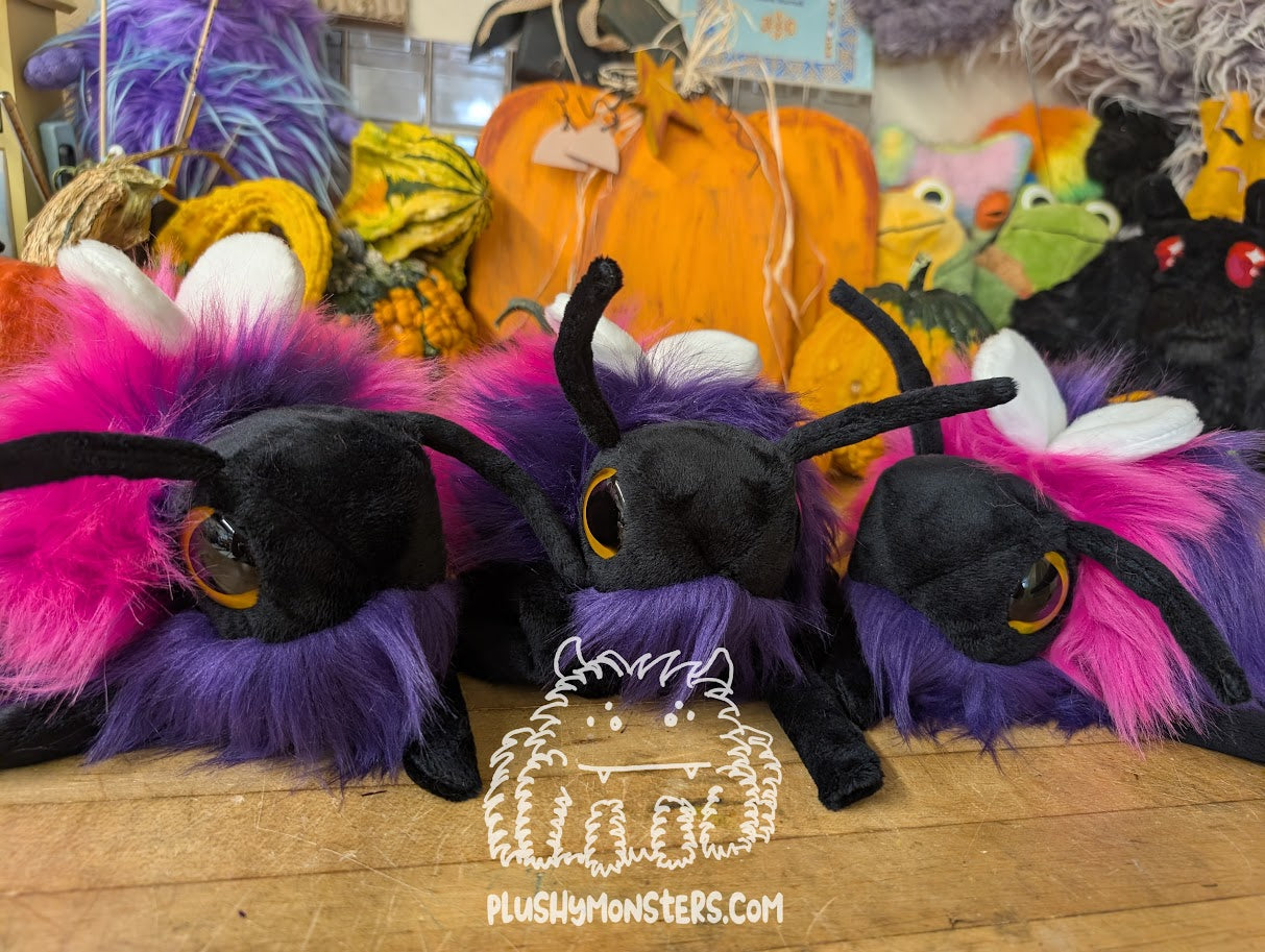 This Big Shaggy Hobo Beeatrice features large, mango offset-pupil eyes, two floppy antennae, two undersized, derpy wings, a shaggy Poe tummy, stripey booty, and a prominent stinger. This is all to say that these guys are super freaking amazing, and I'm sure you will love them! 🥰