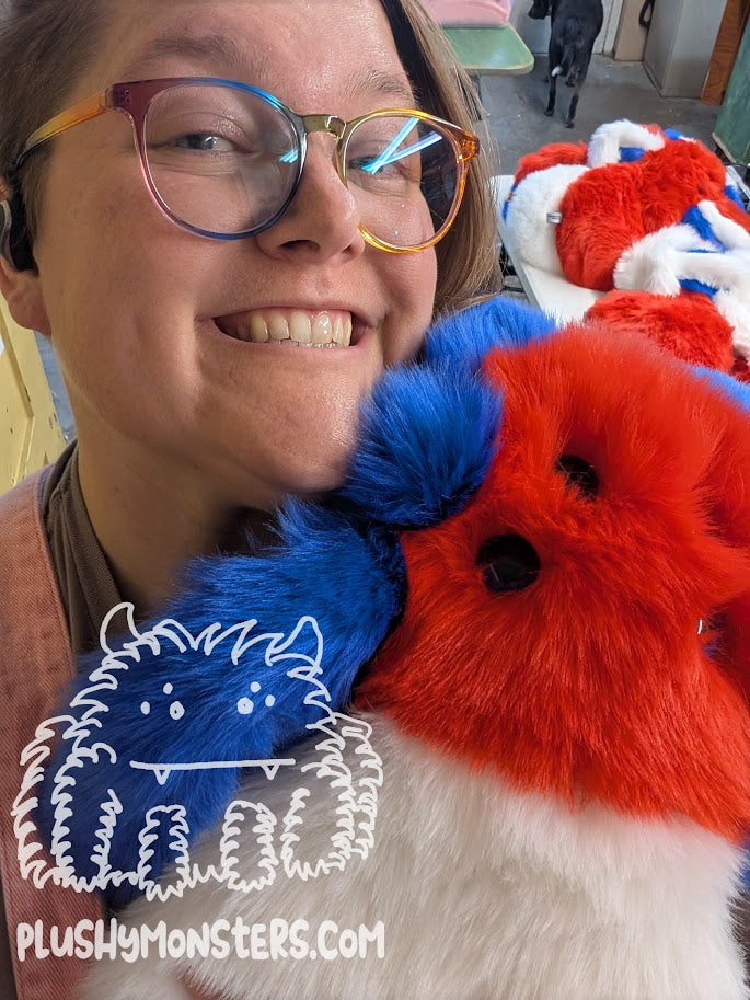 David and Mom have been working together to develop their weighted Pancake Spider design and have come up with a plushy that contains very little stuffing and, like, a lot of glass weighting beads in a large pouch, allowing the weight to slide around more freely. This makes for a very floppy sort of fellow who is wonderful to drape across oneself for super comfy snuggle times. π₯°