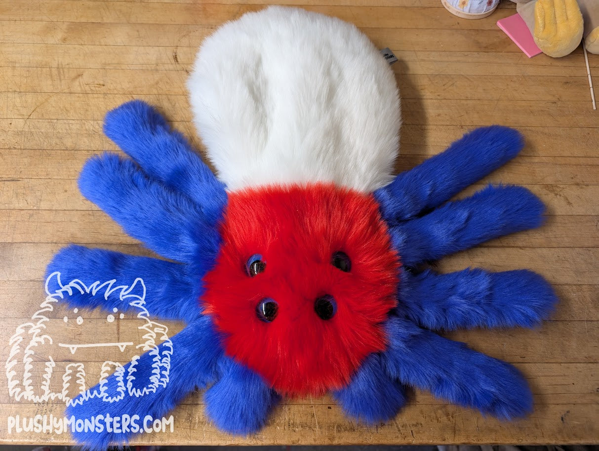 This weighted Pat Pancake Spider is crafted from short-pile red, white, and blue fur and features large red kawaii eyes. Not to mention about five pounds of beautifully heavy glass beads. HE'S A CHONK! π