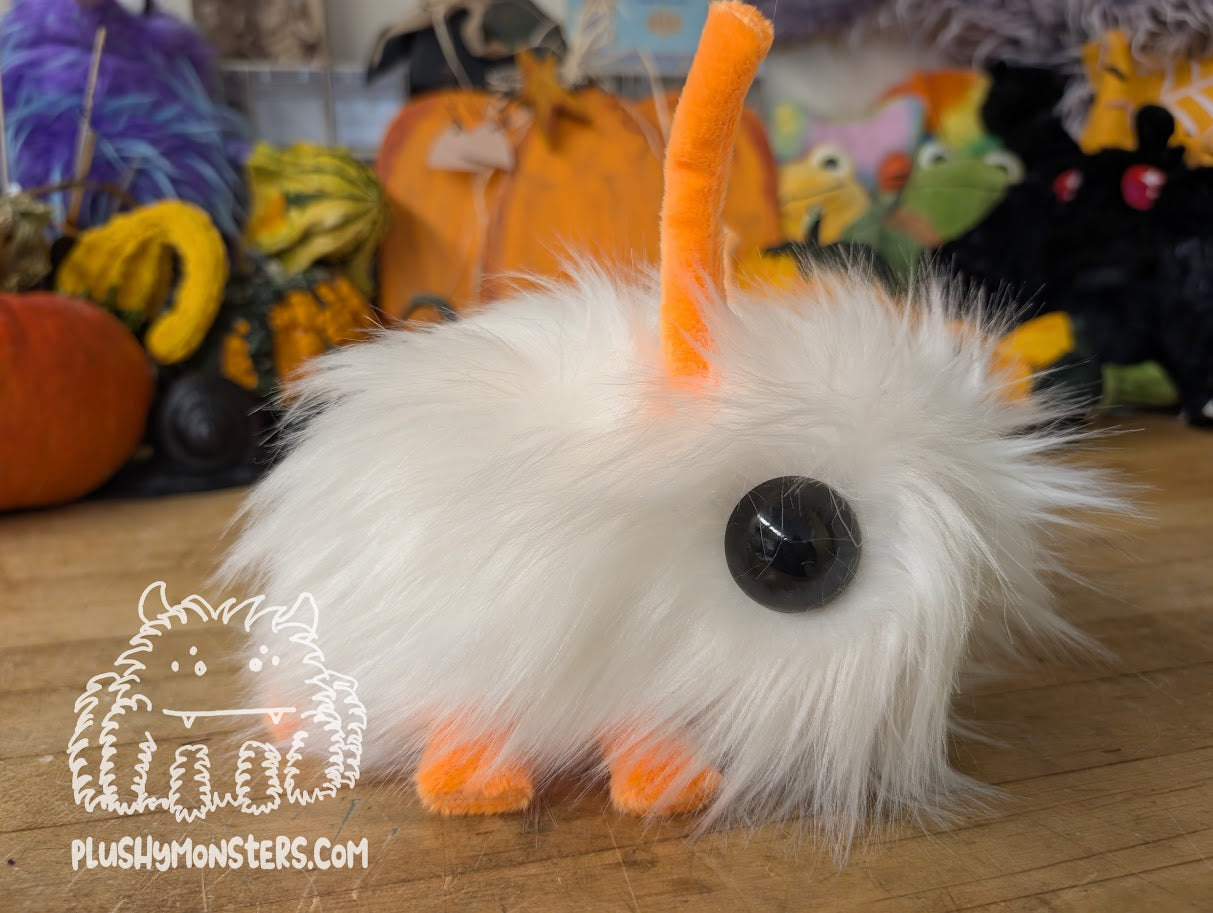 Glob is a wonderful Bugomination that Mom made. He is adorable! And floofy! And his legs are the stumpiest, best things in the whole freaking world!!! 🥰🥰🥰 I LOVE HIM SO MUCH!!! 🥰🥰🥰 His antennae are the opposite of his stumpy, stumpy legs, in that they are very long and skinny, which is also wonderful. 🥰 He would love to come home and be your bestest buddy. 😁