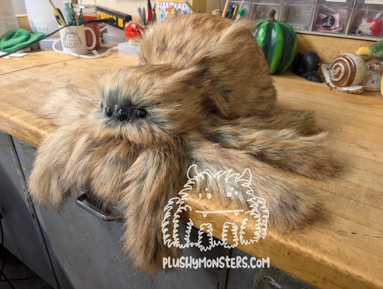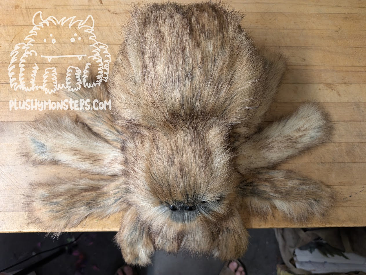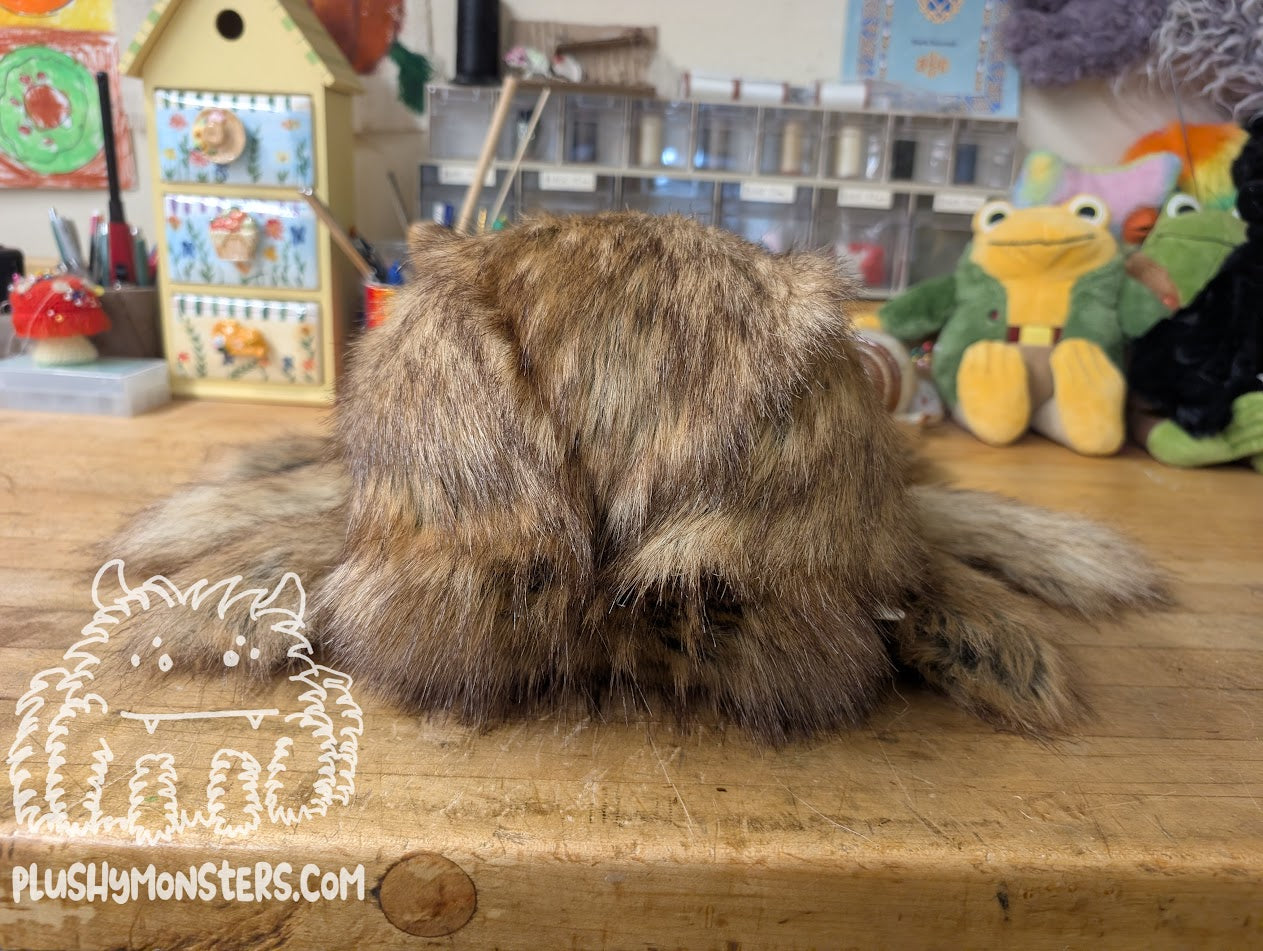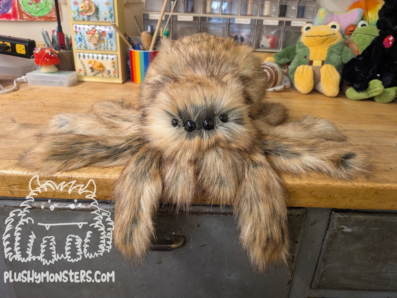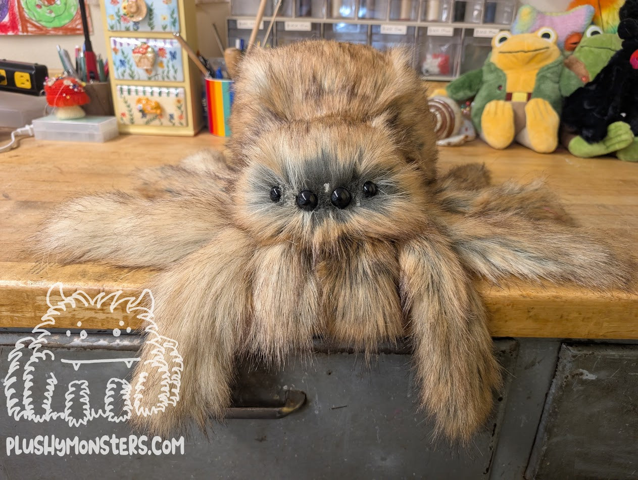 Lil' Onk is a Lil' Guy-sized weighted spider in shaggy, multi-length pile Canadian Fox faux fur. It has a soft undercoat with somewhat coarser guard hairs over the top. They are super chonky and would love to be your new bestest bud!