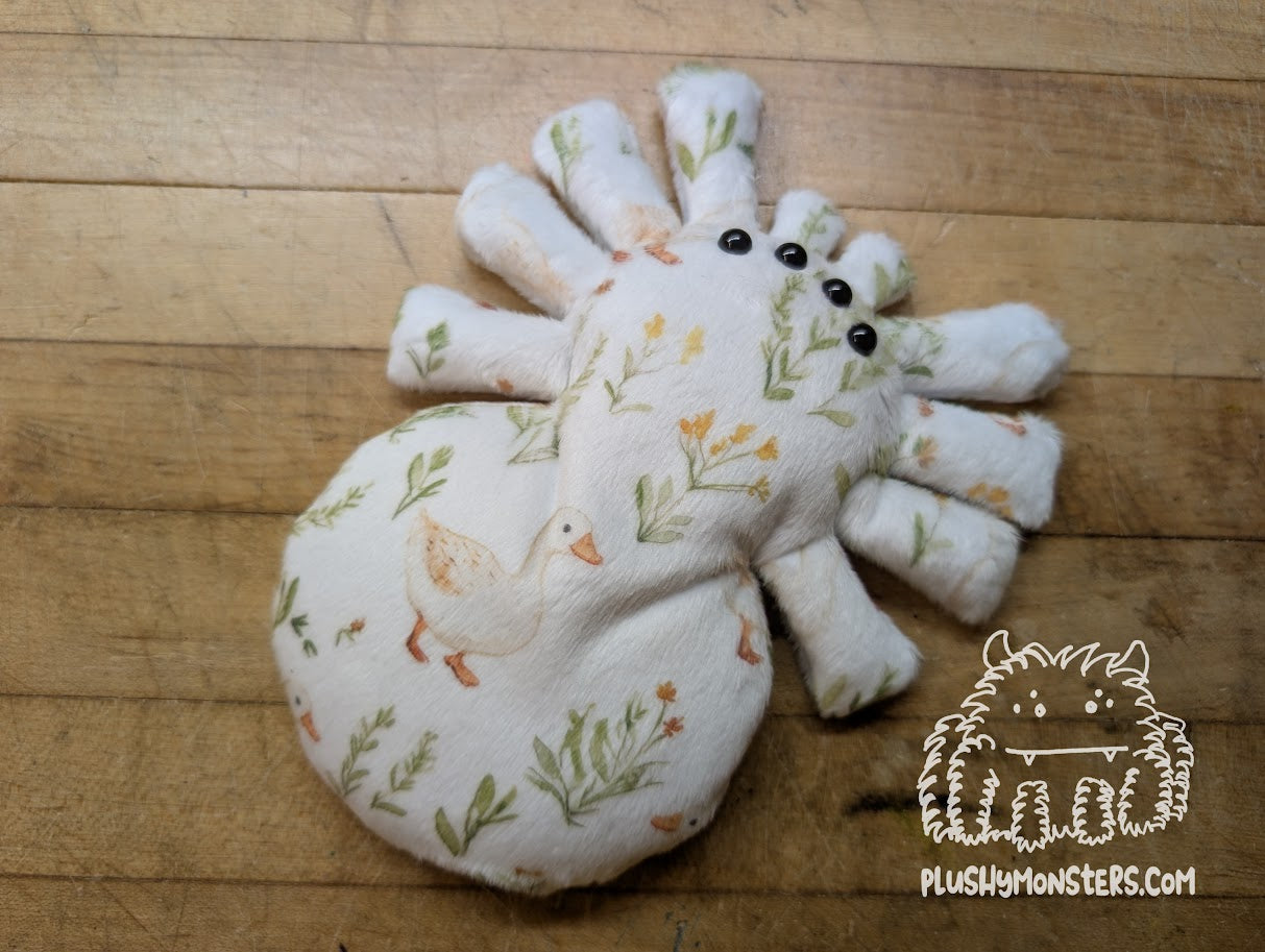 These chonky, precious little guys are made from dye-sublimated minky fabric featuring unique springy designs. They are filled with more than a pound of extremely satisfying glass weighting beads, making for a fun, hand-sized little guy who is wonderful to hold, toss, and snuggle. 🥰